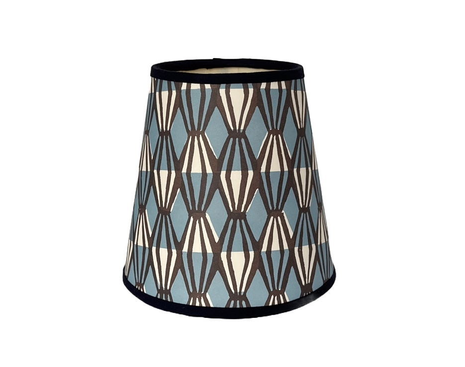 The Blue Harmonia lampshade is made using paper from Cambridge Imprint, lined with cream card and is finished with a black cotton trim.