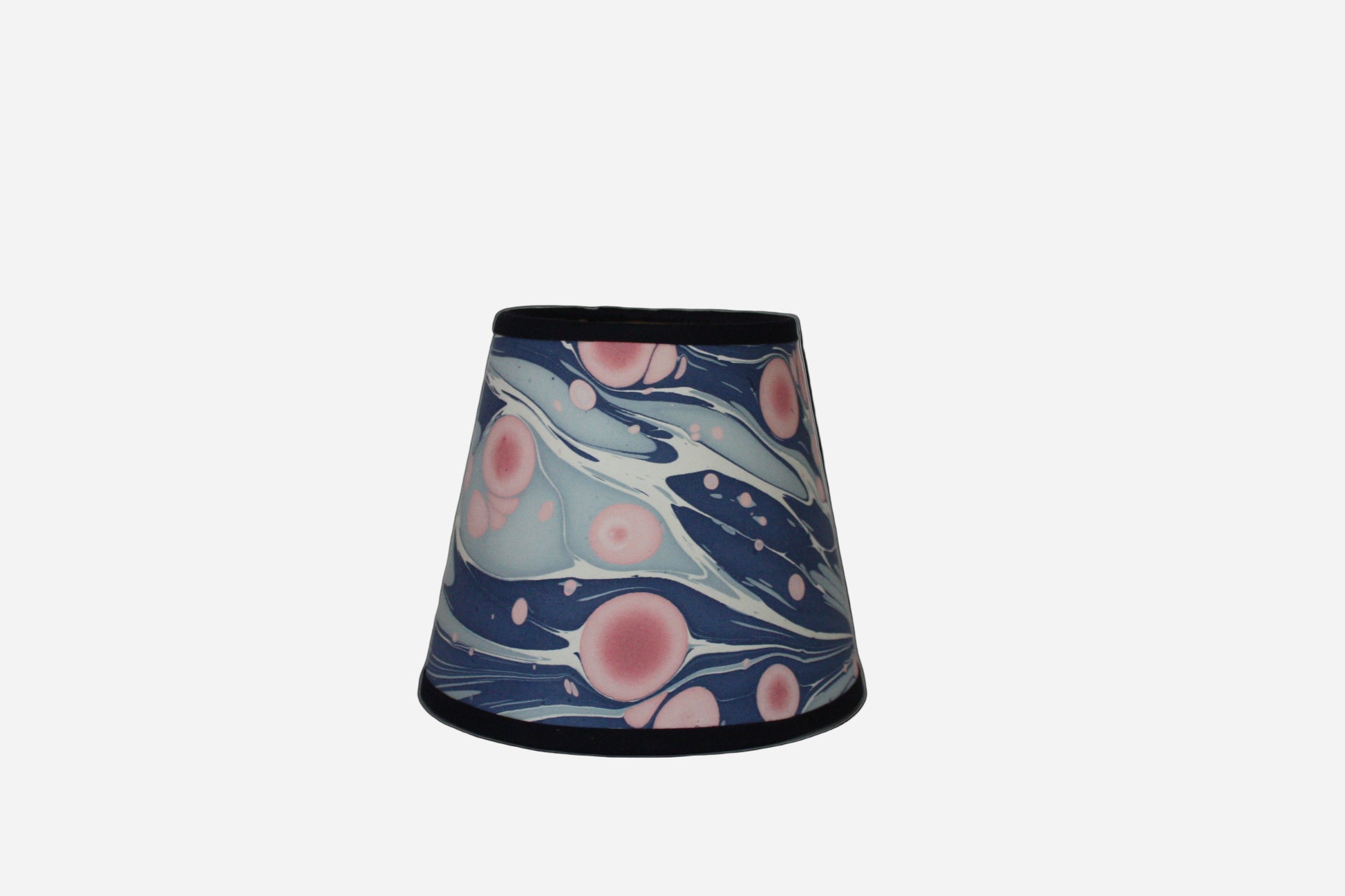 The lampshade is made from hand-marbled Indian recycled cotton paper, lined with cream card and is finished with a blue cotton trim.