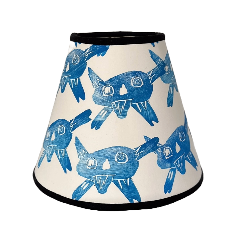 The Jack lampshade is one of our exclusive hand-block-printed designs on cream paper, lined with cream card and is finished with a black cotton trim.